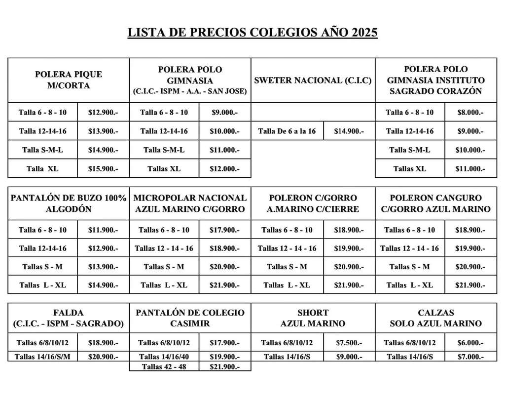 Uniformes Instituto Sagrado Corazón